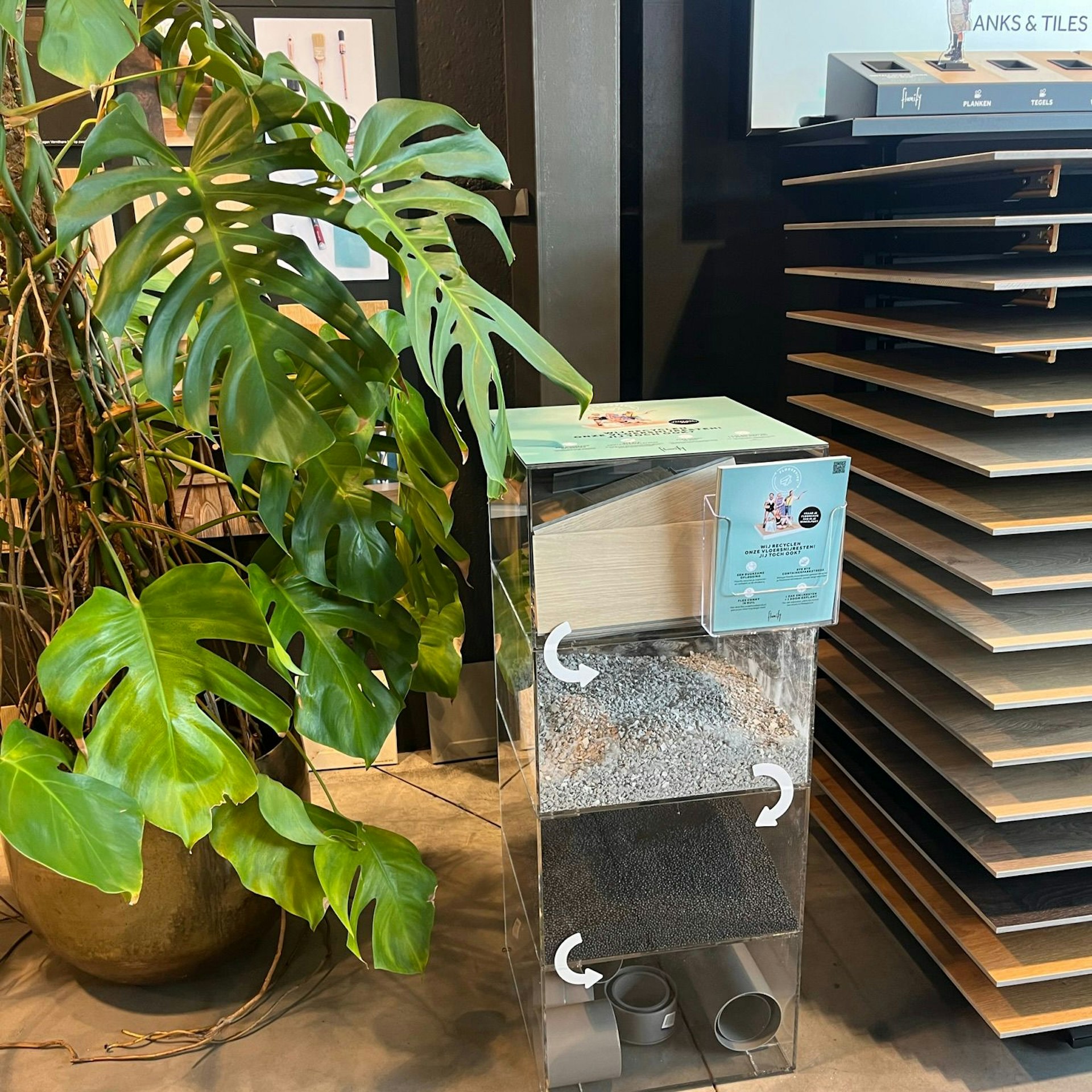Thuis nog snijresten over na het plaatsen van je vloer? Halt! Die hoef je niet zelf weg te gooien. Breng ze gewoon terug naar dit Floorevive- winkelpunt. Zo ben je er zeker van dat je restjes optimaal gerecycleerd worden en maak je ook zelf de cirkel mee rond. Vraag alle informatie bij dit winkelpunt.
