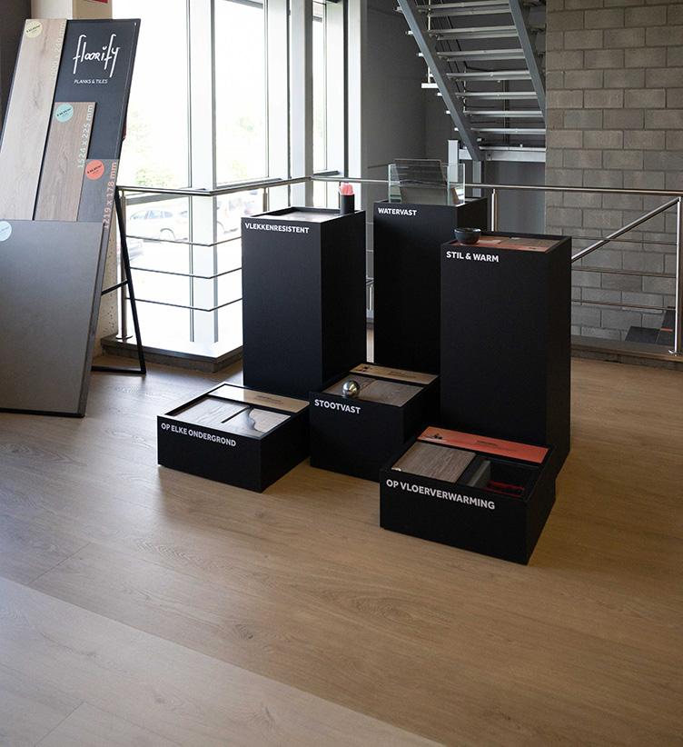 Bekijk de verschillende Floorify-vloeren in het groot en ervaar de unieke texturen en kleuren met eigen ogen. Zo kan je je perfect een beeld vormen van hoe de vloer er in jouw woning zal uitzien.