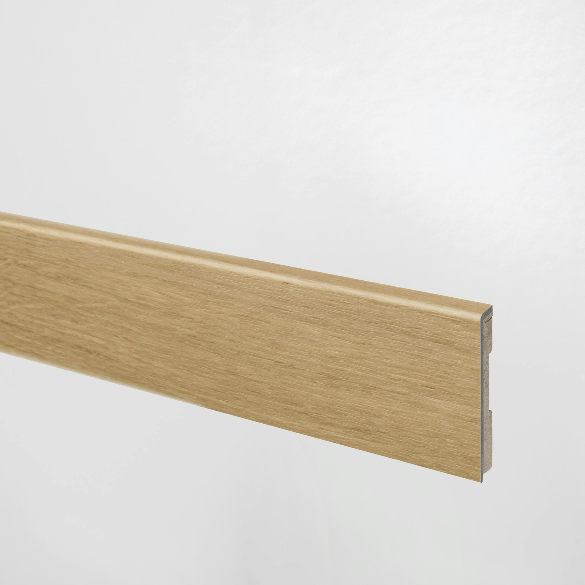 For a seamless transition from your Floorify Croissant floor to wall, Floorify Croissant standard skirting boards are the perfect choice, especially if you want a subtle, elegant finish. Not only do these skirting boards match Floorify floors in terms of style and durability, but they also offer a practical solution by expertly hiding the expansion joint. This makes them ideal for those who prefer a streamlined look to the more striking appearance of tall skirting boards. Choose Floorify standard skirting boards to accentuate the natural beauty of your space with a timeless look, while discreetly concealing an essential part of your floor installation.