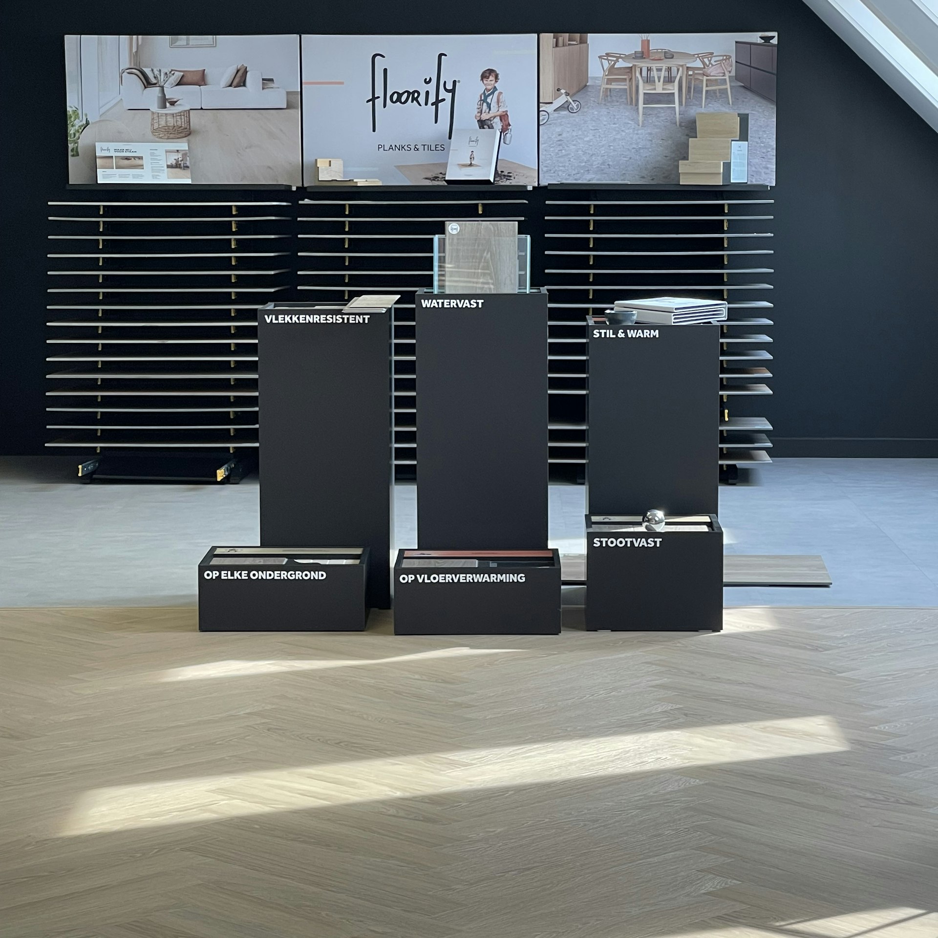 Bekijk de verschillende Floorify-vloeren in het groot en ervaar de unieke texturen en kleuren met eigen ogen. Zo kan je je perfect een beeld vormen van hoe de vloer er in jouw woning zal uitzien.